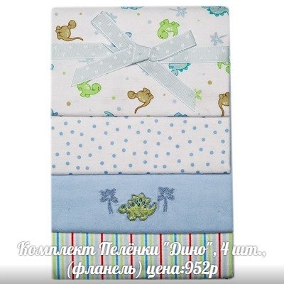 1.Комплект Пелёнки "Дино", 4 шт., (фланель)