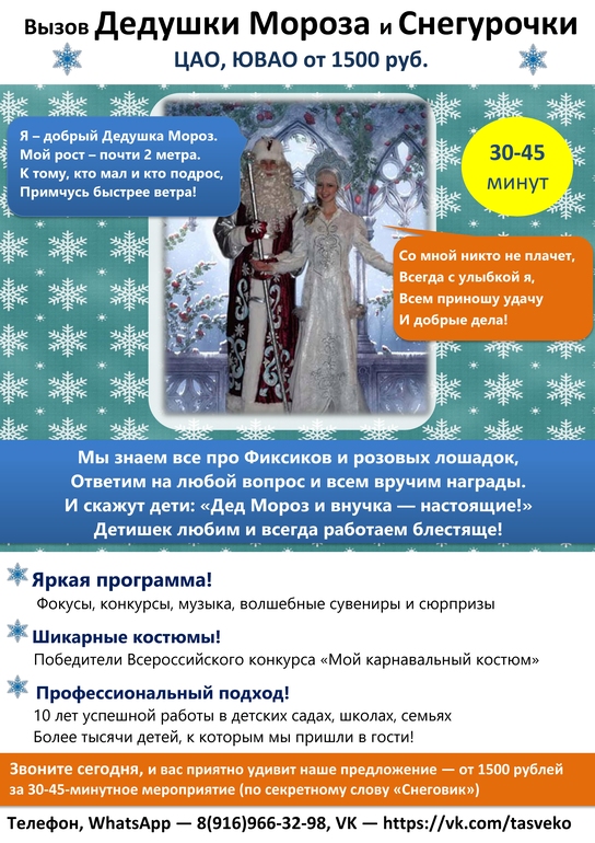 Александра в Услуги 9 лет Кому Дедушку Мороза и Снегурочку? организация праздников и торжеств Посмотрите еще 20 записей на эту тему Отменить Ответить Оформим фотозону для детского праздника в Ростове-на-Дону и области Чаты Беременных Выберите чат: Январята-2026 Февралята-2026 Мартята-2026 Апрелята-2026 Майчата-2026 Июнята-2026 Июлята-2026 Августята-2026