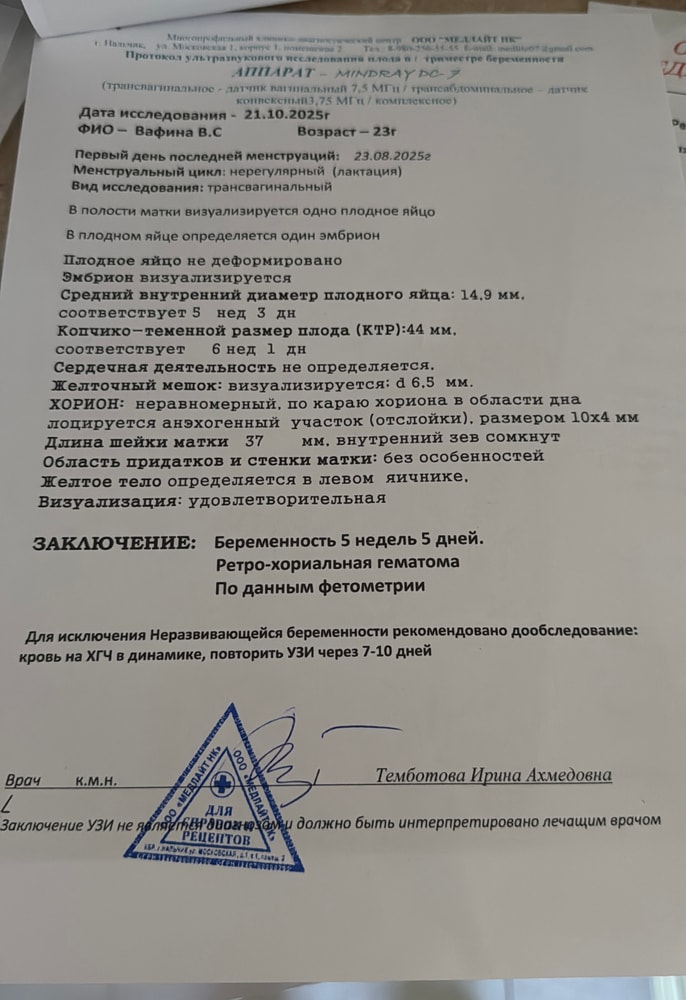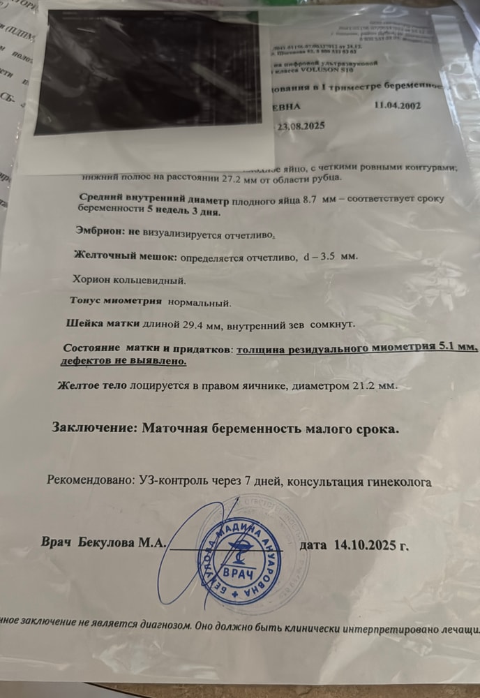 Медицинские вопросыПомогите пожалуйста понять, врачи говорят по разному, одни отправляют быстрее на чистку, другие сдавать хгч и узи через неделю, в динамике узи хорошее, неделю назад эмбриона не было, в этом узи увидели, но сердцебиения нет, первый день последних мес. 23.08, но цикл нерегулярный, так как ребенку год и он на гв.