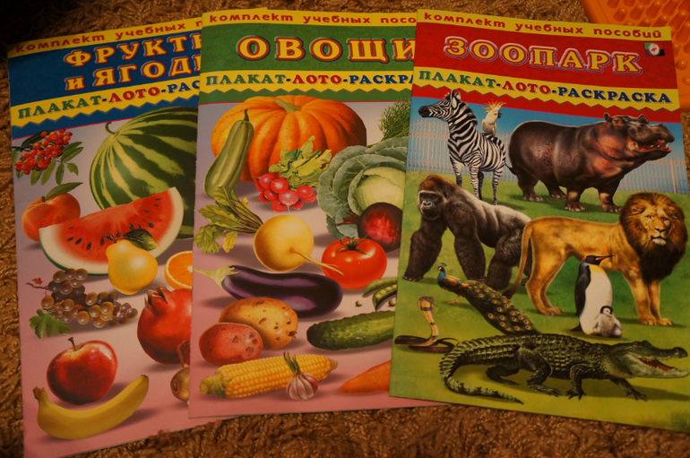 В комплекте: раскраски, лото и плакат. Помобие на скрепке, я пока не раздербанивала, поэтому плакат так сфоткан.