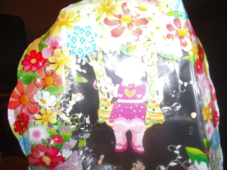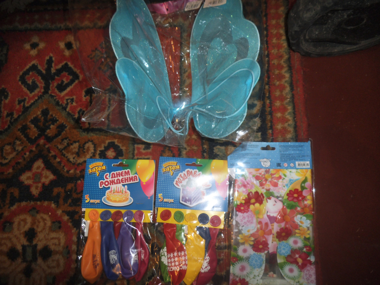 Из всех покупок разочаровал только вот этот последний шарик Написано с игрушкой внутри, только она бумажная)) А сам шарик маленький. Надувается легко, ребенку понравился. правда прокусила его, но я скотчем заклеили и снова надула...
