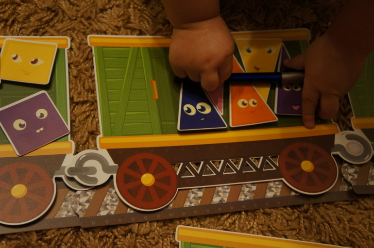 Играть интересно, очень много деталей и липучек. Заявлен возраст 3+, но я считаю, что именно этот набор уже с года можно начинать. (в 3 скорее всего будет скучнова-то начинать) Вагоны крепятся друг к другу и к рельсам.