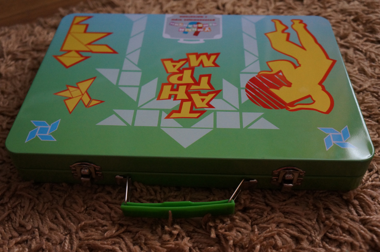 Сам чемоданчик железный с крепкими замочками. Есть несколько фонов. много магнитов геометрических форм и много карточек с заданиями.