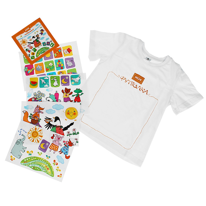 В набор входят аудиодиск с любимыми сказками и песнями, термонаклейки с веселыми героями и футболка, которую малыш украсит с помощью родителей!