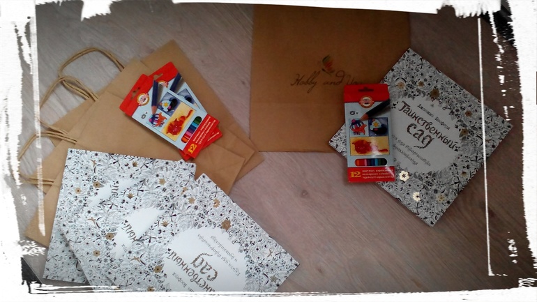Тут хвастаемся!!!!!С лёгкой руки Виктории закупила замечательные антистрессовые разукрашки "Таинственный Сад". Что я скажу.... ТАКОГО шикарного качества за собственно бюджетные деньги не ожидала. Отличный твёрдый переплёт, отличная подборка рисунков. В дополнение пойдут карандаши Koh-i-Nor, наши " вторые мамы" тоже должны снимать стресс после рабочего дня. П.С В майшопе прикупила пакеты из бумаги крафт, идеально!