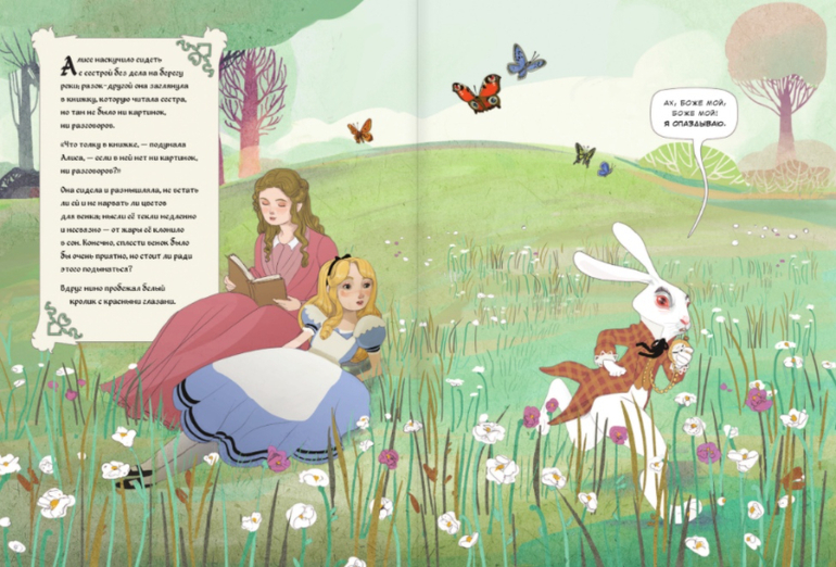 «Алиса в стране чудес» издаётся вот уже больше ста пятидесяти лет. Девочка Алиса бежит за Белым Кроликом, проваливается в глубокий колодец и оказывается в чудесной стране, населённой знакомыми и невиданными существами.