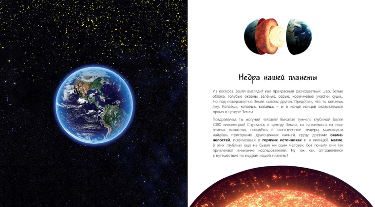 Эта познавательная книга с великолепными фотографиями и забавными авторскими рисунками расскажет о внутреннем строении нашей планеты. Как рождаются пещеры? Кто прячется в глубинах океана? Почему возникают землетрясения и вулканы? Как «работает» магнитное поле Земли? Книга знакомит детей с геологией и тектоникой, расширяет кругозор, прививает интерес к науке.