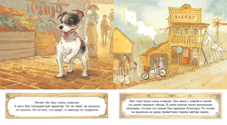 Ничья собака доверчиво бежит следом. Она очень хочет, чтобы её любили. Чтобы самый лучший человек на свете дал ей имя и подружился с ней. А за это собака готова подарить ему преданное сердце. В этой акварельной книжке - две нежные и трогательные истории о счастливой встрече одиноких детей и бездомных собак.