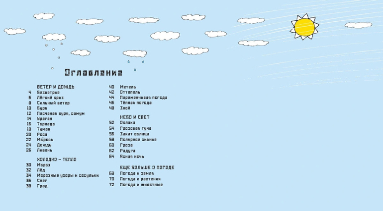 В этой познавательной книге с великолепными фотографиями и забавными авторскими рисунками собраны истории о самых захватывающих и необычных явлениях природы. Погода каждый день меняется. Сегодня яркое солнце и синее небо, а завтра наползут грозовые облака и пойдёт дождь. Сегодня ветер настолько сильный, что сбивает с ног, а завтра тихо и торжественно полетят на землю белые снежинки. Погода - большая затейница, у неё в запасе немало невероятных сюрпризов. Среди них снежная метель, величественное торнадо, гроза, северное сияние и многое другое.