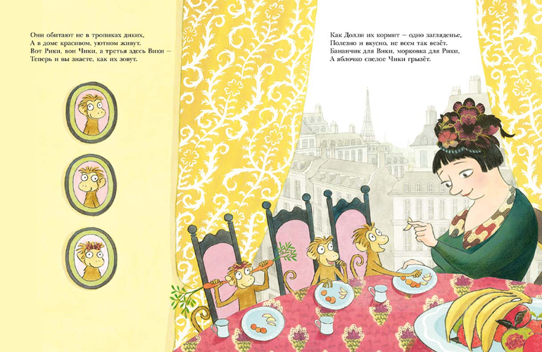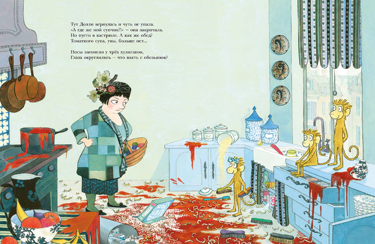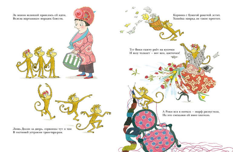 В мире немного людей, которые знают секрет создания идеальной книжки-картинки так же хорошо, как авторы «Трех озорных мартышек» - известный британский художник-карикатурист Квентин Блейк и его ученица художница Эмма Чичестер Кларк. Им очень весело работалось вместе, неудивительно, что и книжка получилась необыкновенно жизнерадостной. В образе Долли Смит каждый родитель без труда узнает себя. А в образах озорных мартышек - своих маленьких непосед.