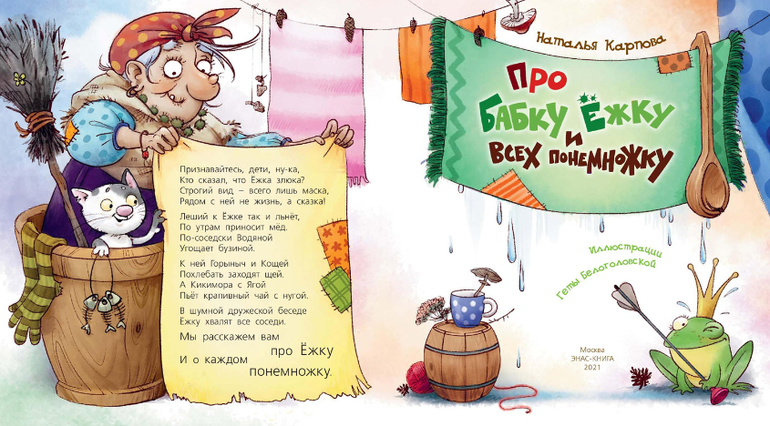 Весёлые стихи про Бабку Ёжку и её сказочных приятелей сочинила Наталья Карпова, а нарисовала всю эту чудесную компанию Гета Белоголовская.