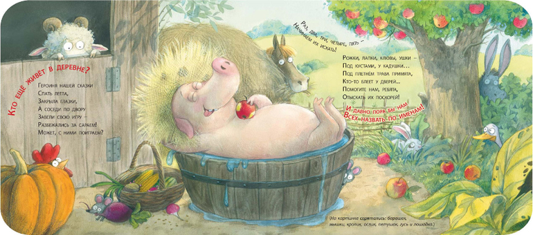 Веселые стихи Натальи Карповой, озорные рисунки Любови Ерёминой-Ношин, да еще и загадочные картинки, где надо найти остальных обитателей фермы, развлекут и порадуют всех - малышей, их родителей, бабушек и дедушек.