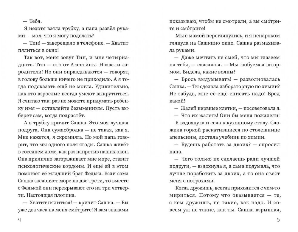 Дом, в котором живет Тин, - десятый по счету от моря. Но она научилась видеть море сквозь все эти дома. Это легко, если подключить воображение. Сложнее найти в большом городе того самого единственного человека, с которым можно бесконечно идти по набережной и разговаривать, не замечая хода времени. Найти - и не потерять. Тин четырнадцать лет, она недавно переехала в большой город на берегу моря. У неё прекрасные родители, хорошие друзья и лучшая подруга Сашка. Но чего-то не хватает: она мечтает по-настоящему влюбиться.
