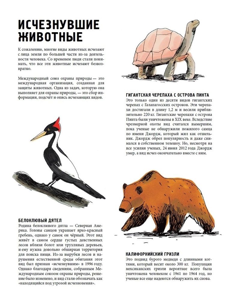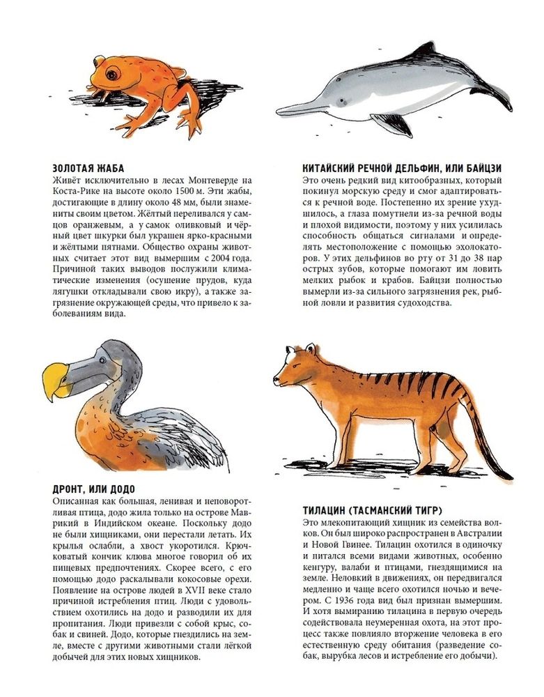 Автор книги, французский художник-иллюстратор Барру, объясняет читателю, какие животные исчезли или совсем скоро исчезнут с лица земли, если мы не будем беречь природу.