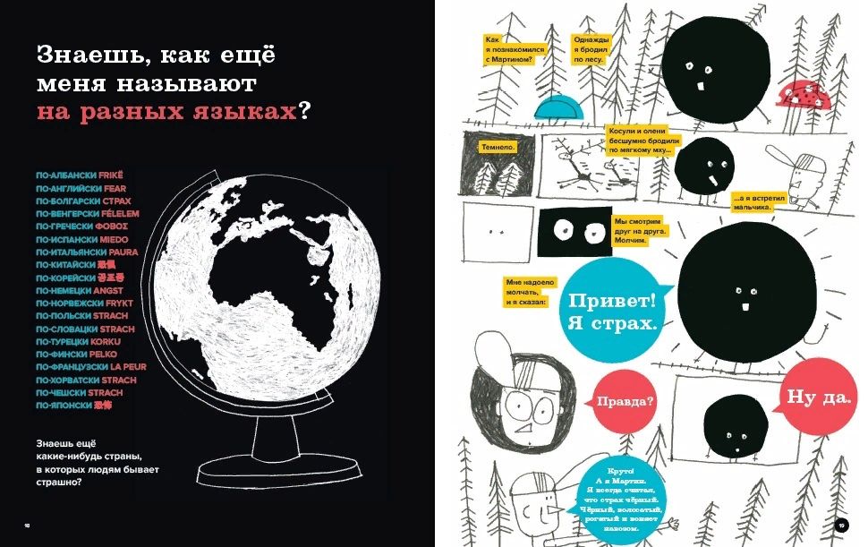 Посмотри на страх с разных сторон. Представь его как тревогу, панику, фобию, но не забудь и о смелости. Поможет тебе в этом мальчик Мартин, который вместе со страхом проживает кучу приключений. Некоторые из них наверняка насмешат тебя до слёз. Кто боится волков - спокойно может пойти в лес. Но проще будет тому, кто научится признавать свой страх, называть его по имени и понимать, откуда он взялся.
