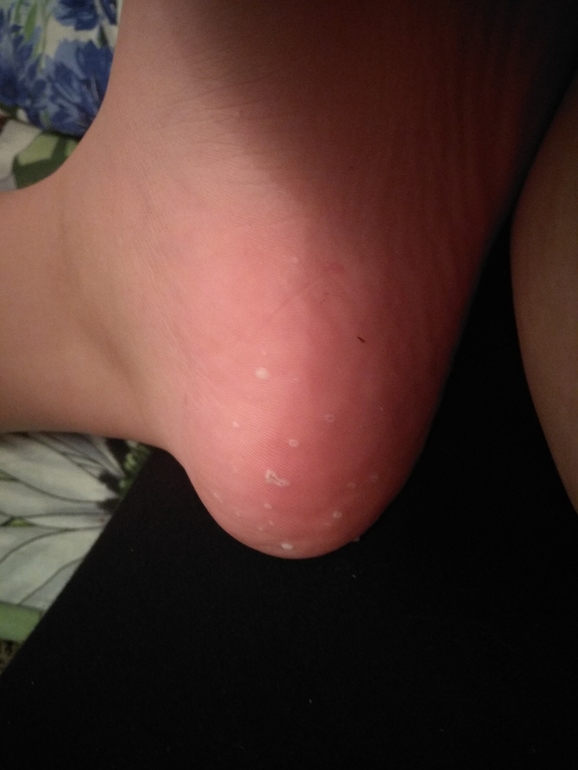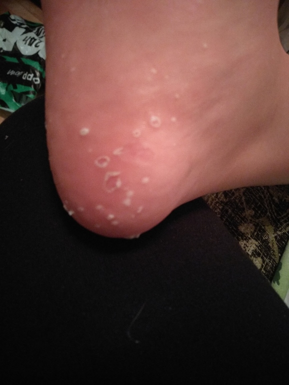 На руках тоже так лопается? У моей так проявляется аллергия. Только у нас на руках с них ещё и сочится. Сильно слазит кожа, иногда и ногти захватывает