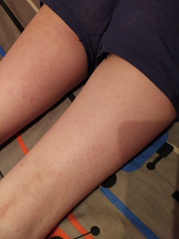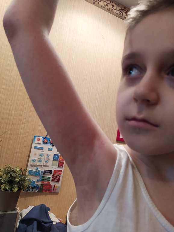 Пришли от врача, на стопах укусы мошек, и по всему телу пошла аллергическая реакция, все как вы и говорили))