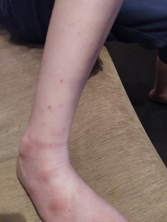 Уже все на свете передумали, и на комары особо не похоже, и на клопов/клещей всяких вроде тоже не очень...