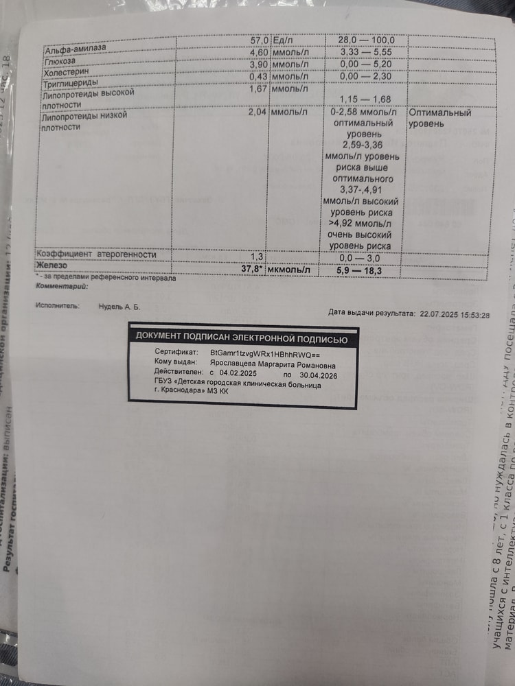 Polina, симптомов никаких. Вообще. Сдали анализ надо было для переоформления инвалидности . Но это не первый раз такой анализ, всегда железо повышено . Педиатр ничего не говорит по этому поводу. Читала в инете, что это могу быть проблемы с печенью, но у нее АЛТ, АСТ и другие показатели печени в норме.