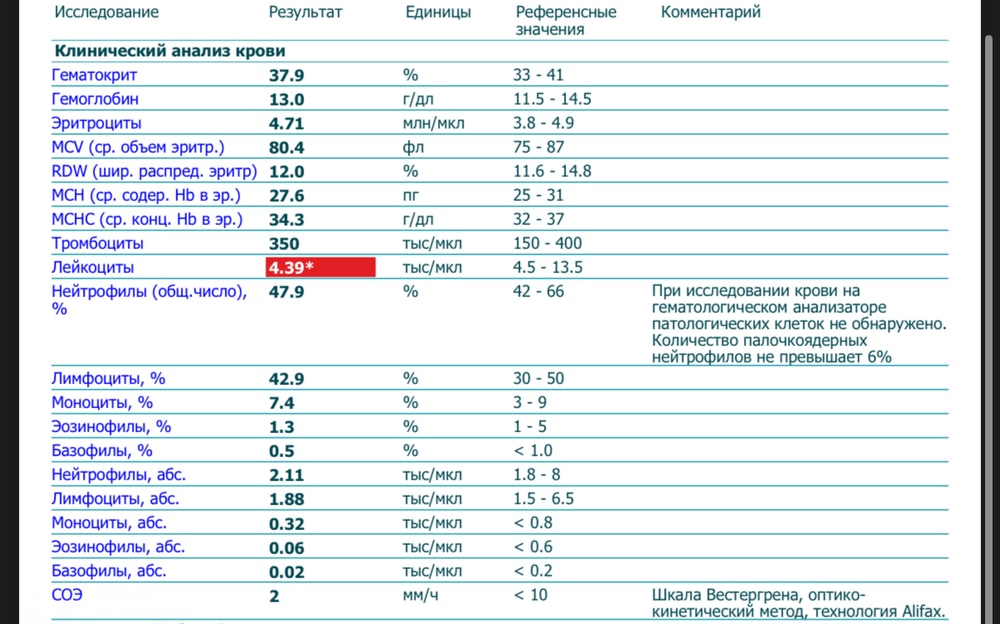 Если смотреть только анализ, то тут незначительная лейкопения.