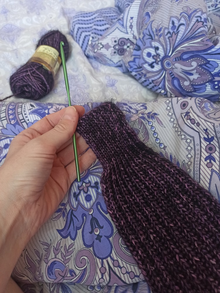 Отправила своих гулять. А сама завалилась в кровать, включила новый альбом горячо любимой группы Blackbriar и принялась за вязание свитера 💜🖤