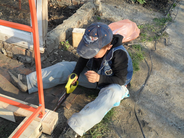 Бруски для новой теплицы обрабатывает