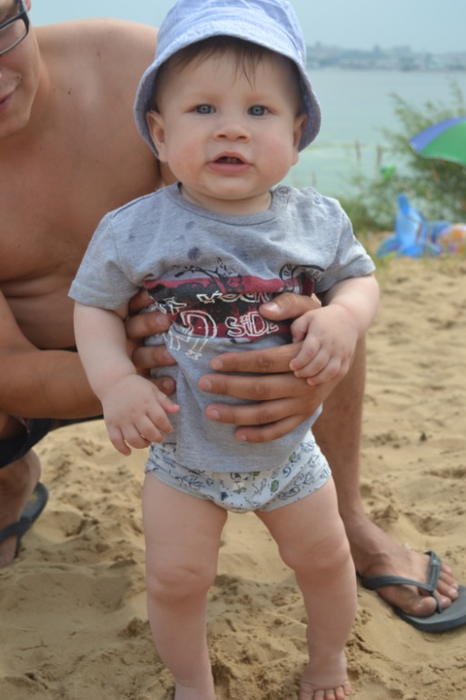Заодно взвесились. Вес 9400 (неделю назад взвешивалась с ним и без был 9900...) Рост 75. Стоит сам несколько секунд. Топать даже за ручки не хочет. Говорит "Да", "Па-па-па", "Ба-ба", иногда "Мам" ну и еще много всякой тарабарщины))) Ладушки не делает, машет привет-пока, играет с сосой (дает мне в рот (