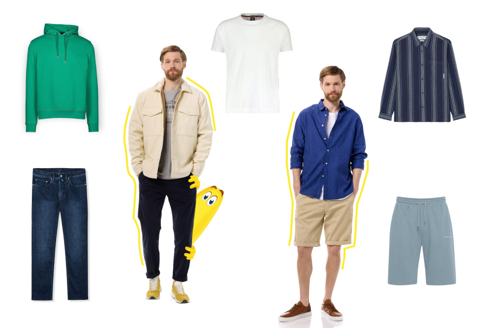 Однотонное худи с логотипом Karl Lagerfeld,базовая футболка LERROS,хлопковая рубашка Marc O'Polo Denim, шорты из органического хлопка Casual Friday, джинсы Pierre Cardin.