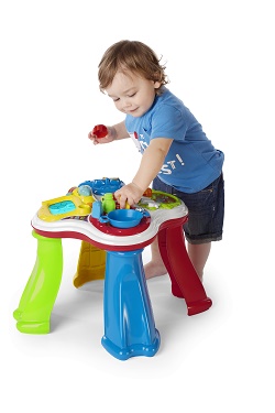 Развлечь самых маленьких непосед, которые только учатся владеть своим телом, но уже стремятся к активной познавательной деятельности, помогут универсальные музыкальные комплексы. Они могут быть оснащены множеством электронных игр для развития мелкой моторики, съемными предметами для разнообразия процесса игры. Например, двуязычная игрушка «Говорящий столик» от Chicco обучает ребенка первым словам, знакомит с миром искусства, садоводства, кулинарии или музыки.