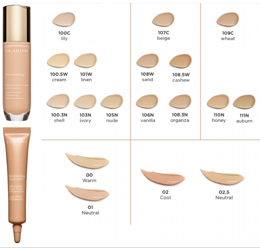 Кроме того, для упрощения поиска эксперты Clarins разработали новую классификацию оттенков, которая включает 3 степени насыщенности (очень светлые, светлые, средние) и содержит, в дополнение к номеру оттенка, буквенное обозначение подтона.