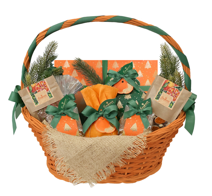 Большой семье – щедрый сладкий подарок из трех коробок конфет, оформленных в едином стиле. Конфеты ручной работы, очаровывающие своими традиционными и оригинальными вкусами, драже «Мандарин» в белом шоколаде с душистым сублимированным кумкватом внутри, желейные конфеты на основе свежих соков с нежным ванильным слоем, декорированные новогодними изображениями мандаринов конфеты «Ассорти» с тающими во рту сливочными и желейными начинками – все это великолепие чарующих вкусов и ароматов в одном подарке, украшенном зеленой атласной лентой, миниатюрной открыткой и нарядным шильдом в виде золотистой елочки.