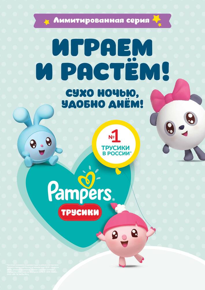 Подгузники-трусики № 11 в России и первый российский анимационный сериал для малышей вступили в коллаборацию, чтобы вместе помогать маленьким девочкам и мальчикам развиваться с комфортом и удовольствием. На упаковках и самих трусиках лимитированной серии Pampers впервые появились изображения персонажей «Малышариков»! Теперь родители могут превратить смену подгузника в веселую игру и быть уверенными, что малышу обеспечены сухость и удобство, благодаря анатомической посадке, технологии мгновенного впитывания и воздухопроницаемым материалам. Эти трусики подойдут всем маленьким непоседам, начиная с 4 месяцев, и они смогут активно изучать мир, развиваться и играть вместе с любимыми героями из «Малышариков».