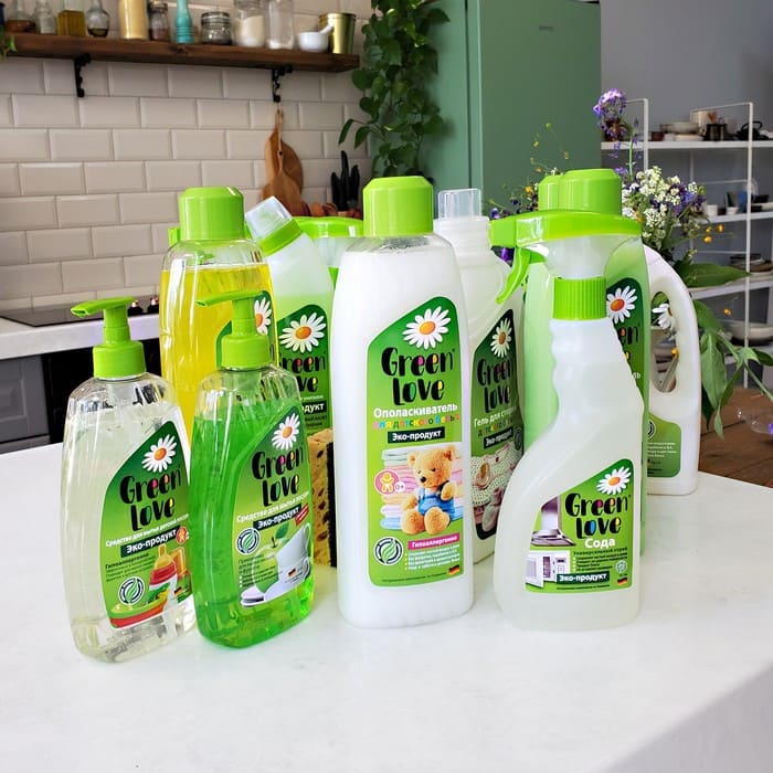 На российском рынке не так много составов для уборки, которые действительно соответствуют принципам экологичности. Средства по уходу за домом российского бренда Green Love созданы на основе натуральных компонентов природного происхождения. Производятся на основе природного комплекса, состоящего из фруктовых кислот, экстрактов имбиря и бамбука. Безопасны для взрослых, детей и животных, подходят для ежедневного применения. В состав моющих средств GREEN LOVE не входят фосфаты и фосфонаты, парабены, SLS и химические красители, активный хлор и другие опасные компоненты, а все используемые ПАВы биоразлагаемы в аэробных и анаэробных условиях. Ароматизаторы, входящие в состав продукции, разрешены к применению в соответствии со сводом правил Международной Ассоциации Ароматизаторов IFRA (IFRA Code of Practice). А упаковка на 100% пригодна для вторичной переработки.
