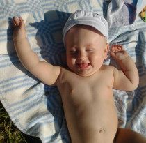 Алан, 9 месяцев: Хорошо загорать на закате!