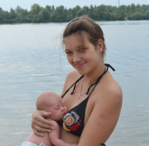 Загораем на катере, Нике 3 мес