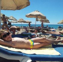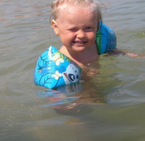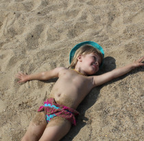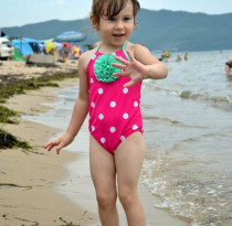 Находчивая Полина и искупнулась и загарает