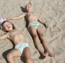 одной не интересно загорать:)Вероника 2,5 годика