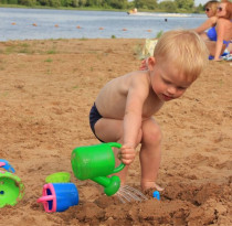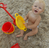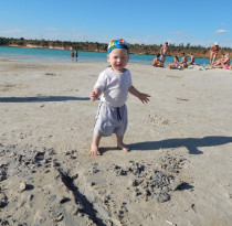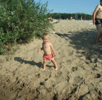 О, какая большая песочница! Макар 1-й раз на море