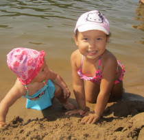 Двоюродные сестрички на пляже.