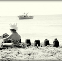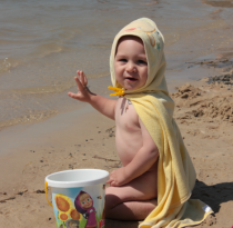 Сижу на пляжу и на маму гляжу. Ксения, 9 мес