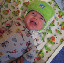Олежек. 2 месяца. Радуемся предстоящей прогулке!