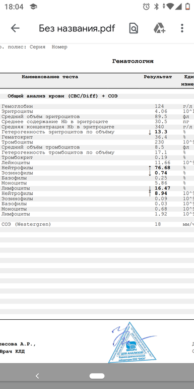 Мила 6 лет Анализы! Что обозначают? Посмотрите еще 20 записей на эту тему Отменить Ответить Софья Судя по анализу, инфекцию подхватили. Это иммунный ответ. Насколько помню, вирусную. 17.05.2020 Ответить Сергеева Анна Ничего критичного вполне приличный анализ 💪 17.05.2020 Ответить Паническая атака или состояние тревожности Результаты анализов 22 неделя беременности Чаты Беременных Выберите чат: Январята-2026 Февралята-2026 Мартята-2026 Апрелята-2026 Майчата-2026 Июнята-2026 Июлята-2026 Августята-2026