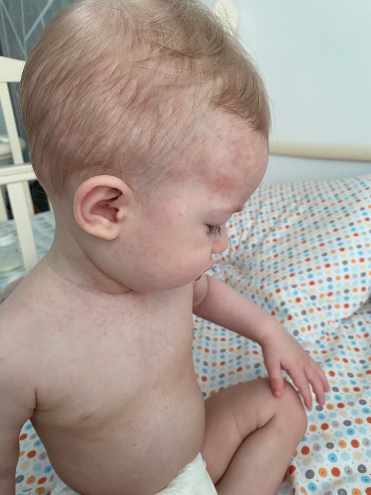 Были у аллерголога в платной клинике и я была готова услышать что у него аллергия на жаропонижающие или составляющие жаропонижающих, а врач на 90 % уверена что так провлял сам вирус (типа розеолы)