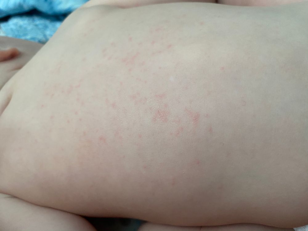 и вдобавок появилась сыпь: на животе, спине, все лицо и голова.