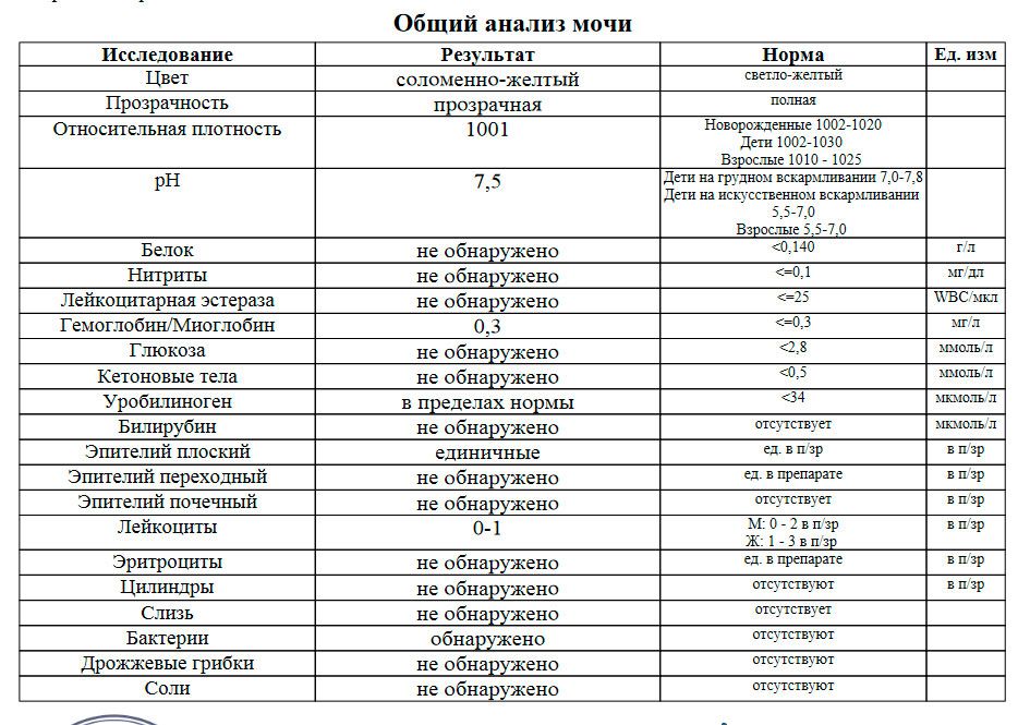 Здравствуйте! Общий анализ мочи ребёнка в настоящее время в пределах нормы. Но учитывая что ребёнок перенёс инфекцию мочевыводящих путей он должен состоять на диспансерном учёте в течении 2-х лет и проходить обследование по плану диспансеризации.