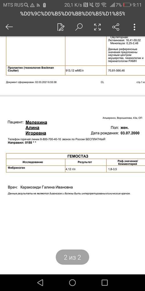 Репродуктолог зачем то назначила сдать пролактин. Ну и естественно он повышен. Я же правильно понимаю что пролактин при беременности увеличивается, и это нормально? Хгч вроде увеличивается нормально, в пятницу он был 65,в понедельник 315. И немного не пойму что с фибриноген ом? Высокий или нормальный? Вбила в интернете норма фибриногена для 1 триместра беременности, и там норма до 4,5. Анализы сдала на 16 дпо. Колю клексан