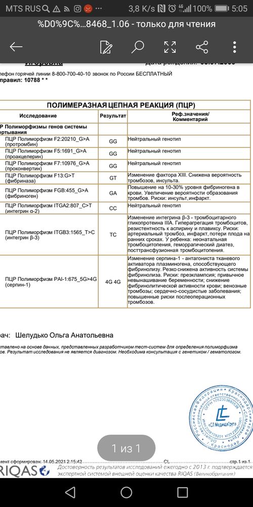 Беременность 15 недель. Примерно с 5 дпо колю клексан по советам репродуктолога(типа, чтобы лучше эмбрион прижился). Также репродуктолог сказал после 12 недель обратиться к гематологу, чтобы решать оставлять клексан или убирать. Гематолог сказал сдать некоторые анализы, включая этот полиморфизм и прислать ему результаты скрининга. По узи в скрининге все хорошо, анализы ещё не видела. Может кто может подсказать, действительно всё очень плохо в этом полиморфизме? Я очень испугалась, когда увидела, что у меня столько рисков... И вообще смогу ли я доносить беременность 😢может у кого были похожие анализы, расскажите как у вас протекала беременность?