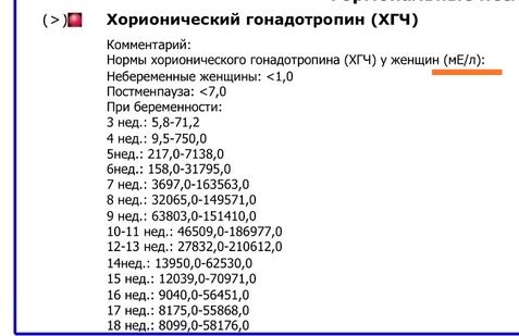 Обычно рядом с показателем хгч написаны нормы по неделям. Для каждого нормы свои