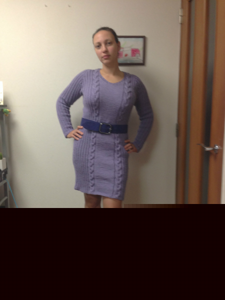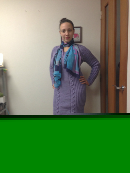 Сегодня меряла с колготками, бусами и ботинками, мне понравилось, да, и шарфик этот очень подходит. Буду носить, а распустить всегда успею, потом похвастаюсь во всей красе, а еще оно хорошо с моей короткой шубкой ))))) и попробую с поясом.