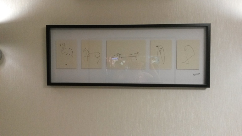 Блин че ж делать то?)) Фон у вас с подписью Пикассо. Вообще картина красивая и интересная. Я уже выбрала частично декор вам еще ковер гляну. И подумаю каким образом сделать яркие акценты ничего особо не переделывая.
